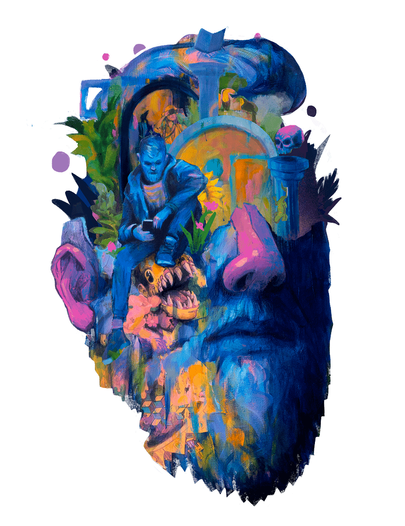 In deze reeks abstracte portretten wordt het onderwerp “Overprikkeling” verkend. In de dagelijkse informatie-apocalypse waarin we ons bevinden wordt het steeds normaler om overprikkeld te zijn. Elk moment van de dag is er wel een nieuw stukje informatie die om je aandacht vraagt. Een melding, een berichtje, een nieuwtje. Non stop, net als de wereld waar we in leven.