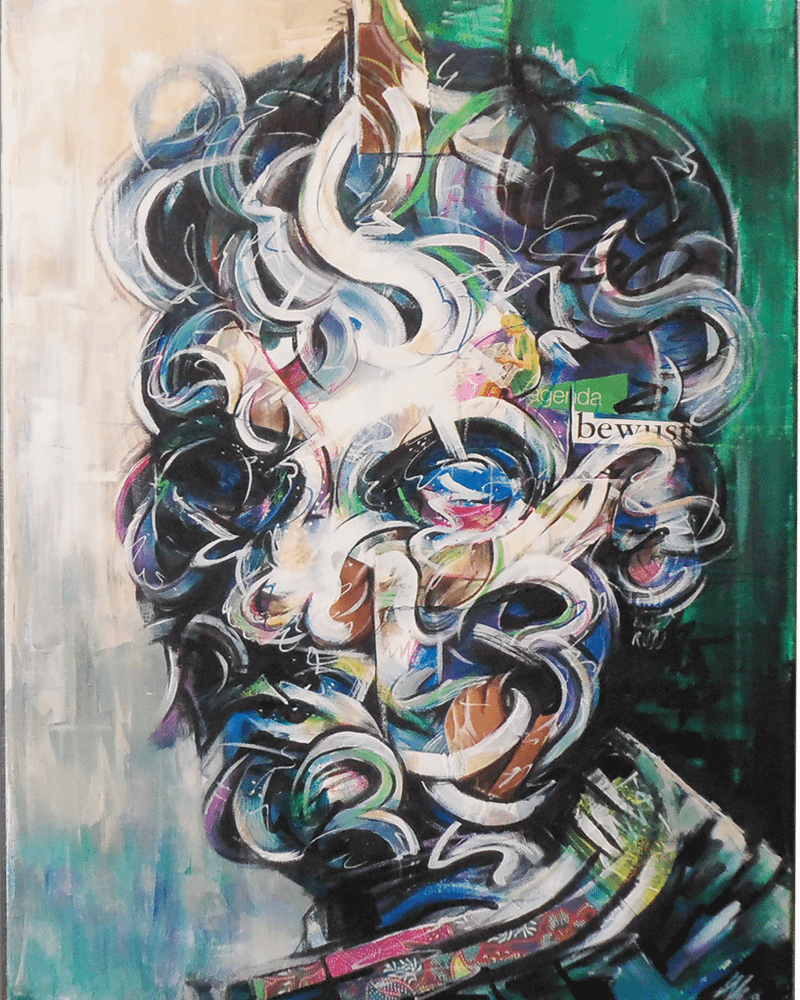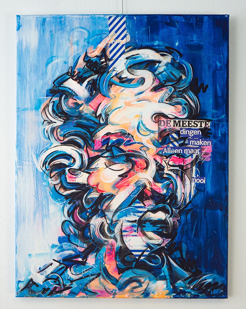 In deze reeks abstracte portretten wordt het onderwerp “Overprikkeling” verkend. In de dagelijkse informatie-apocalypse waarin we ons bevinden wordt het steeds normaler om overprikkeld te zijn. Elk moment van de dag is er wel een nieuw stukje informatie die om je aandacht vraagt. Een melding, een berichtje, een nieuwtje. Non stop, net als de wereld waar we in leven.